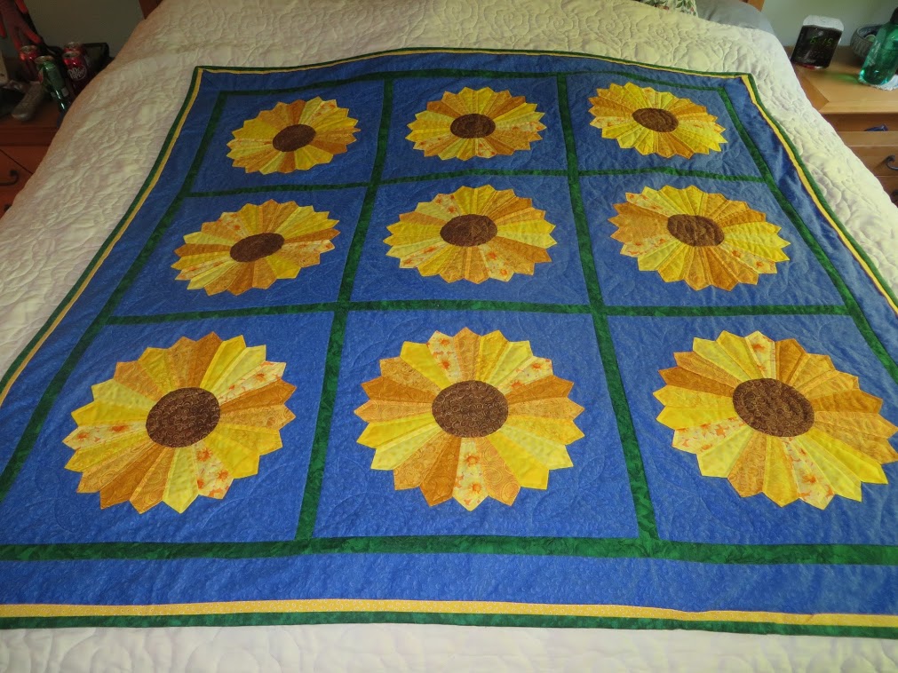 That’s right this post is all about bulking out and… oh no, its about having to fix mistakes, which in sewing involves the seam ripper and I had some ripping adventures on this latest project! You may recall the yellow and green fabric from a post back in January where I finally decided what it was going to become. I picked a pattern called Ruby Reflections in a post holiday sale and while I didn’t have quite enough to do a full pattern, I was able to scale it down one step with what fabric I had (plus a wee bit to supplement the yellow that I was lucky enough to find on ebay) leaving me with what should be enough of the green for the binding so all I need for this one is some backing! But along the way I had one row where I apparently turned the blocks 90 degrees and that one row I seamed together the wrong side so there was plenty of seams to pull apart and redo, but some of the corners seamed together into some practically perfect points.